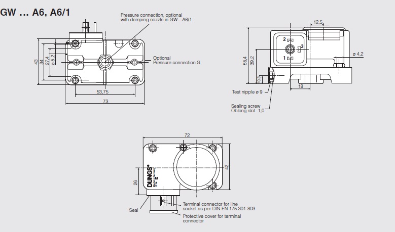 GW 10 A6 پرشر سوئیچ گاز دانگز۱۰- ۲ ملی بار DUNGS | ![]() ![]() |